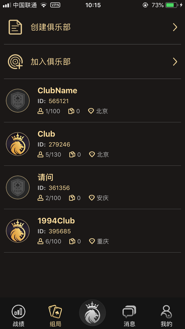 在APP上可以通过俱乐部的名字或者ID去搜索想要查找的俱乐部,这同样适用于朋友的查找;而 房间可以通过直接输入验证码进入